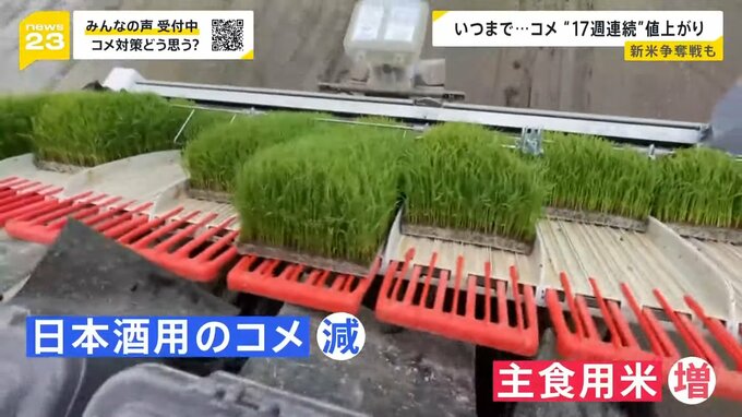 これまで日本酒用に生産していたコメを減らし、主食用米の割合を増やしたといいます。