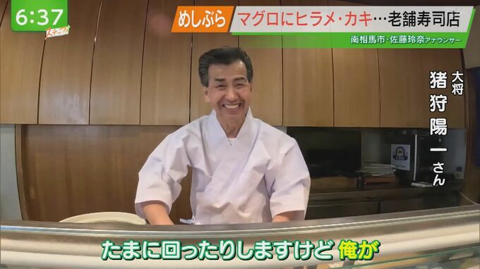 --猪狩陽一さん(弥助鮨 大将)「ご家族でも子どもさんでも、気軽に来て食べてもらう。で回転ずしよりは美味しいと。たまに回ったりしますけど!俺が(笑)」