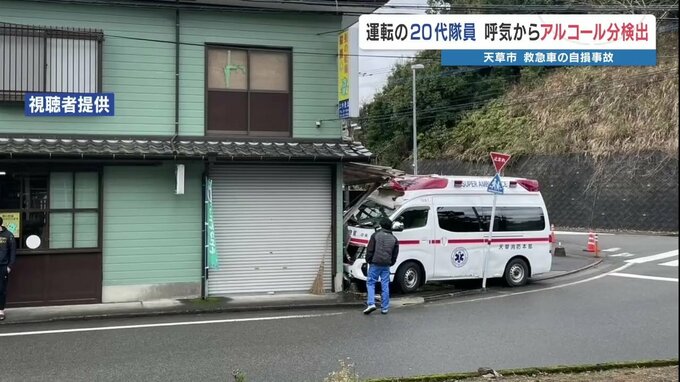 熊本県天草市で起きた救急車の自損事故で、運転していた20代の男性隊員の呼気から飲酒運転の基準値に近いアルコール分が検出されていたことが明らかになりました。隊員は、前夜に酒を飲み、当日、アルコールチェックを怠っていました。