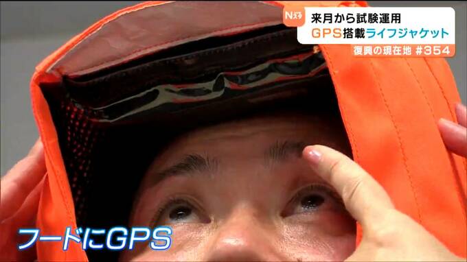 がれきなどから頭を守るフードにGPSが埋め込まれているのです。