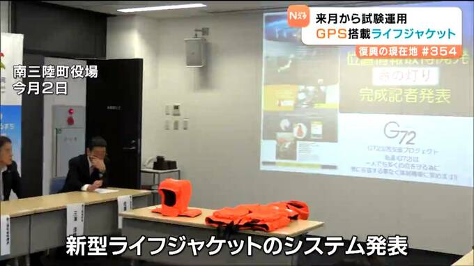 津波で流された人を迅速に救助しようと民間企業と宮城県の南三陸町が開発を進めてきたGPS搭載のライフジャケットが完成しました。