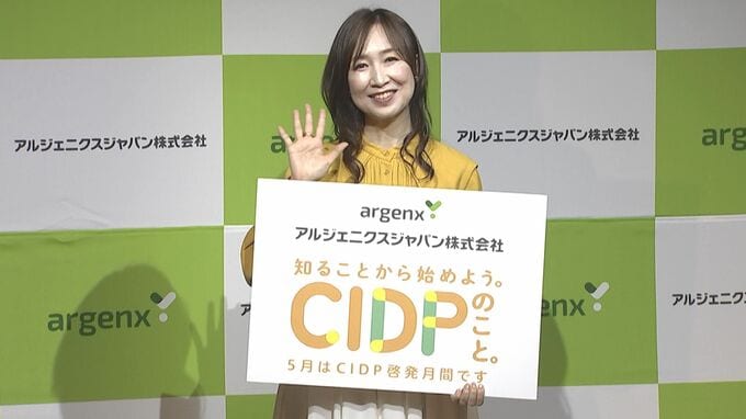 囲み取材に応じた森口さんは、“お話をいただくまで(CIDPを)全く知らなかった。こんなに大変な病気だってことを1人でも多くの方に伝えたい”と、セミナーに参加した感想を伝えました。