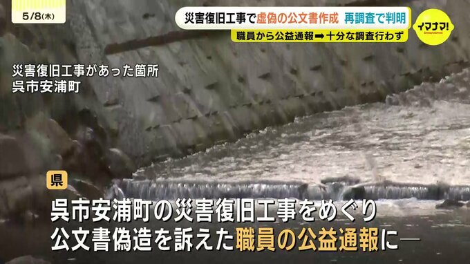 広島県の災害復旧工事をめぐり、職員から公文書偽造を訴える公益通報があったのに十分な調査が行われなかった問題です。県は再調査の結果を発表し、虚偽の文書が作成されていたとして陳謝しました。