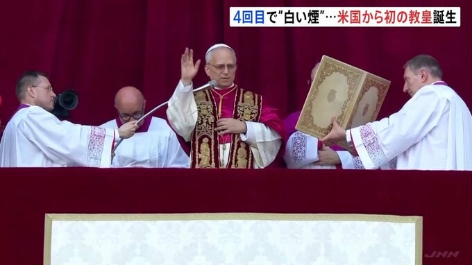 新しいローマ教皇を決める選挙「コンクラーベ」の4回目の投票で、アメリカ出身のプレヴォスト枢機卿が選出されました。教皇名はレオ14世です。記者「煙突から白い煙があがりました。4回目の投票で新しいローマ教皇…