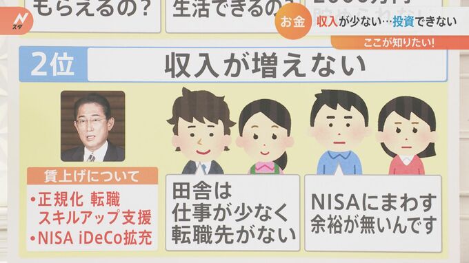 ただ、実際の声では「田舎に住んでいて仕事が少ないので、転職を支援されても、自分の地域では転職先がない」という声や「NISA、投資にまわす余裕がない」という声も聞かれました。