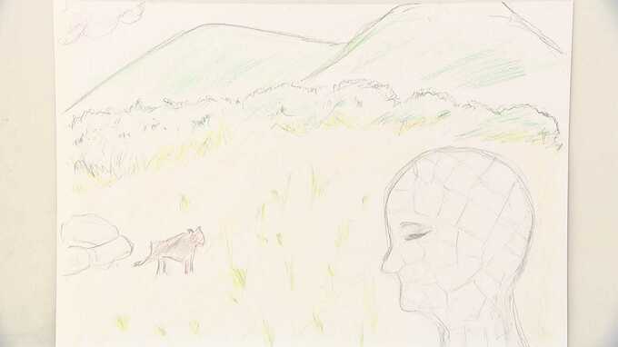 ダビッドさんは、仮に自分の顔を模した彫刻作品が完成したら、その作品をどこに飾りたいか、その場所を画用紙に描くよう指示した。