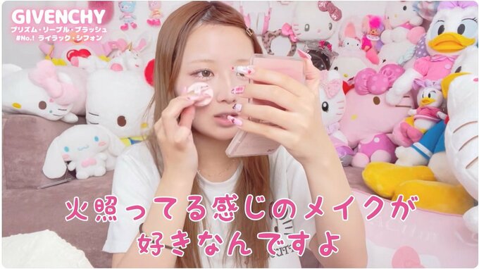 さらに「私は結構濃いのが好きなのでがっつり入れます。めっちゃほてってる感じのメイクが私は好きなんです」と語り、自身の好みを反映させたメイク方法を紹介しています。