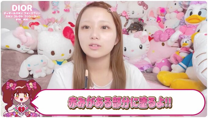 メイクのポイントとして、希空さんは下地とコンシーラーの使い方から丁寧に説明しています。「肌がめっちゃ赤くなっちゃうのでそれを隠すために塗ります」と語り、肌の悩みに対処する方法を紹介しています。