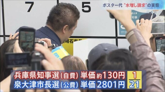 これに対し、泉大津市長選で自治体に請求したポスター代は、1枚あたり2801円。