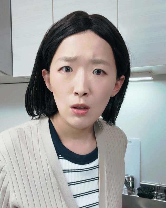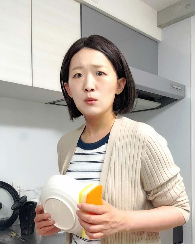 綾瀬はるかさん「TBSドラマ『対岸の家事』お隣の江口のりこさん のものまね 川西さんにブチ切れる寸前です。笑」と、写真をアップ。