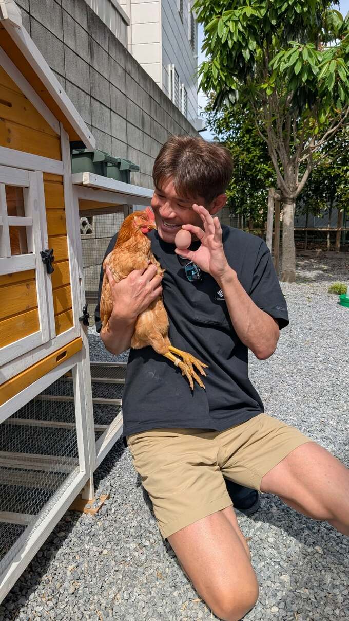 俳優の照英さんが自身のインスタグラムで、「新しい家族」となったニワトリたちとの日常の一コマを投稿しました。