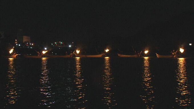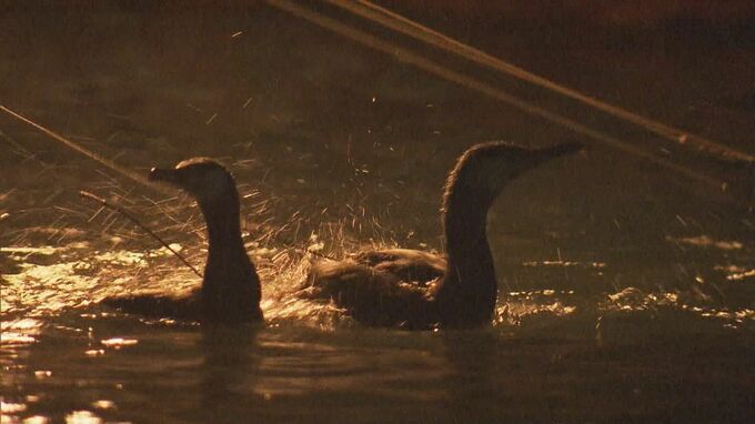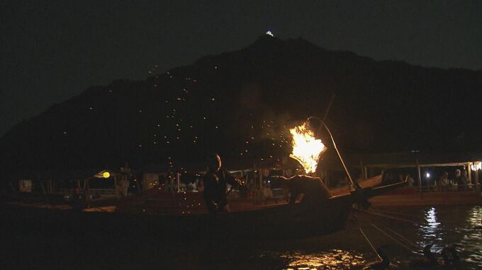 かがり火が川面を幻想的に照らし出す中で長良川鵜飼が開幕 鵜匠が巧みに鵜を操ってアユを捕える伝統の技を披露 岐阜市