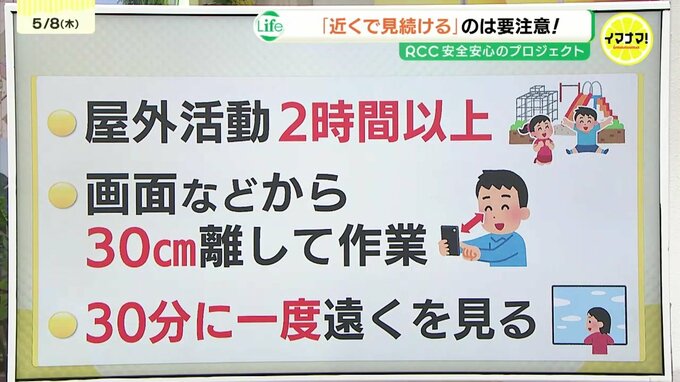 予防には日光にあたり、「外で遊ぶ」ことが最も確実なんだそうです。近視がある子もない子も、1日2時間以上、外にいることが望ましいとのこと。