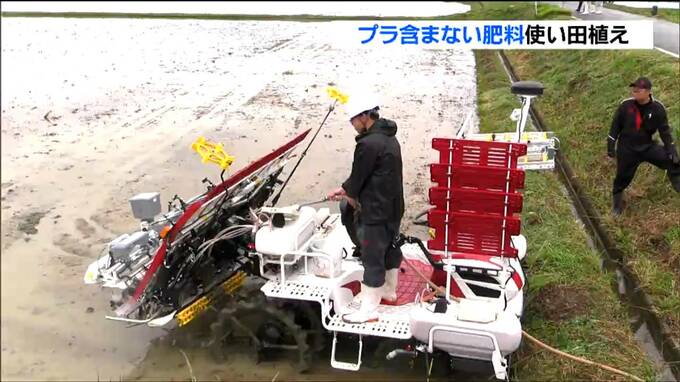 プラスチックごみによる海洋汚染を防ごうと、プラスチック成分を含まない肥料を使ったコメ作りに取り組んでいる生産組合が12日、宮城県気仙沼市内で田植えを行いました。田植えが行われたのは、気仙沼市波路上の20…