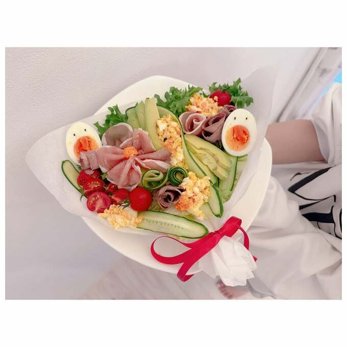 辻󠄀さんは、「今日は母の日」と書き出し、「夜ご飯はみんなで作り…ソラは豚汁を…希空はブーケサラダを…涙」と投稿。
