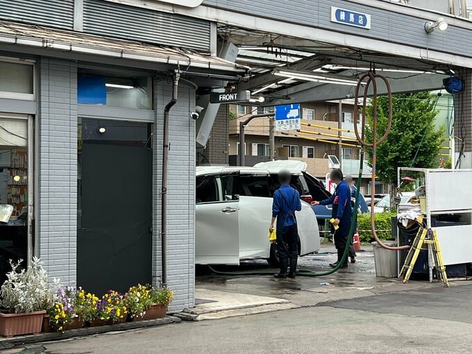 続けて、「何人掛かりだぁ!やっぱりここは仕事が丁寧。最後はタイヤワックスで、ベカベカに・・・」と写真を添えて投稿しました。