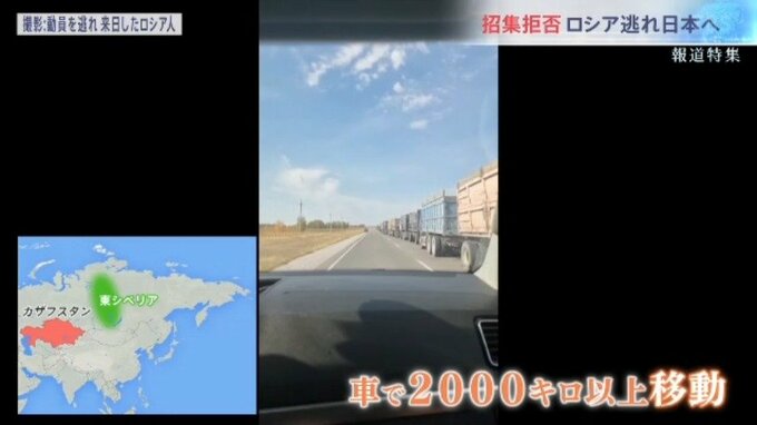 来日したロシア人男性が最初に目指したのはロシアとカザフスタンの国境。東シベリアからは、2000km以上。国境付近では、国外に逃れようとする人の姿が増えてきた。