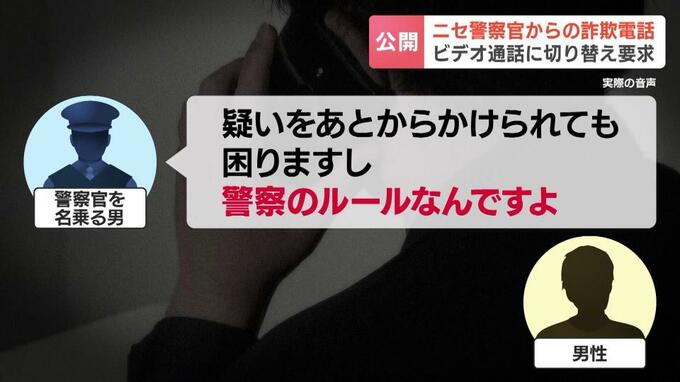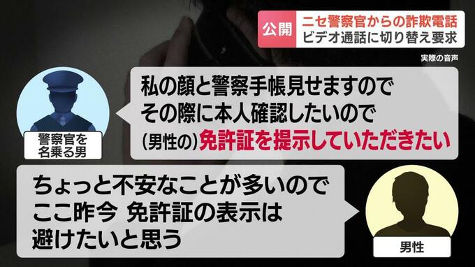 「私の方からこのビデオ通話で警察手帳を出して私の顔を確認した後に(男性の)顔出していただいて本人身分証明書の方確認したい」