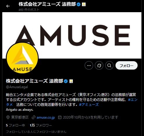 12日、サザンオールスターズ・福山雅治さん・星野源さん・深津絵里さん・吉高由里子さんら有名な俳優/ミュージシャン/クリエイターの方々が多く在籍する大手芸能事務所/プロダクションの「アミューズ」が、法務部の公式Xを更新。所属アーティストへの盗撮について、注意喚起を呼びかけました。
