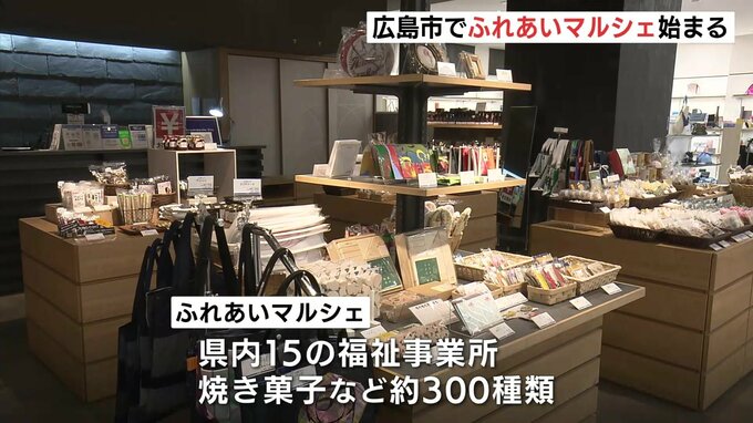廿日市市や呉市など県内15の福祉事業所で作られた、焼き菓子や雑貨などおよそ300種類が並んでいます。