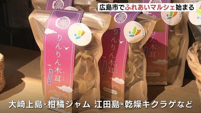 食品も地元でとれたものが多く、大崎上島産の柑橘類で作られたジャムや、江田島の事業所で栽培・乾燥させたキクラゲなどが並びました。