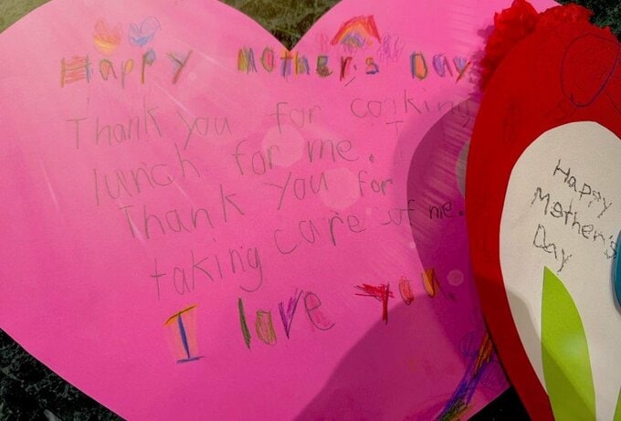 メッセージカードには、手書きで「Happy Mother’s Day」「Thank you for cooking lunch for me. Thank you for taking care for me. I love you.」(僕のために、ランチを作ってくれてありがとう。お世話をしてくれてありがとう。愛してるよ。)と、綴られています。