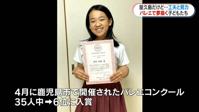 小学5年生の日高詩織さん。4月に鹿児島市であったバレエコンクールで35人中、6位に入賞しました。