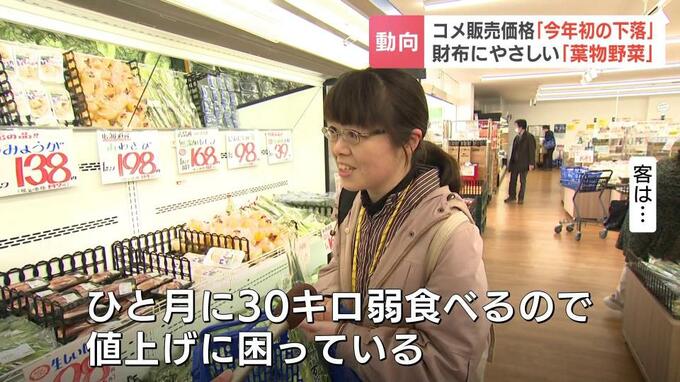 コメ販売価格“今年初の下落”も去年同時期比2倍の高値、小売店「問屋さんの在庫がひっ迫、値段が下がらない」一方、葉物野菜の育ちは順調で平年並みの価格へ 北海道放送 2025年5月13日(火) 19:02 国内 ■「値上がりに困っています」 客「安くならないですね。もう少し安くなってほしいですよね。上がる前の…2000円以下だったらありがたいですね」 客「すごい子どもたちが食べるので…。ひと月に30キロ弱食べるのですごい値上がりに困ってます」