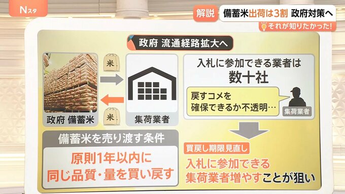 実際、入札に参加できる業者は数十社ほどですが、集荷業者によると「戻すコメを確保できるか不透明」とも話していて、備蓄米の入札に参加しない業者があります。