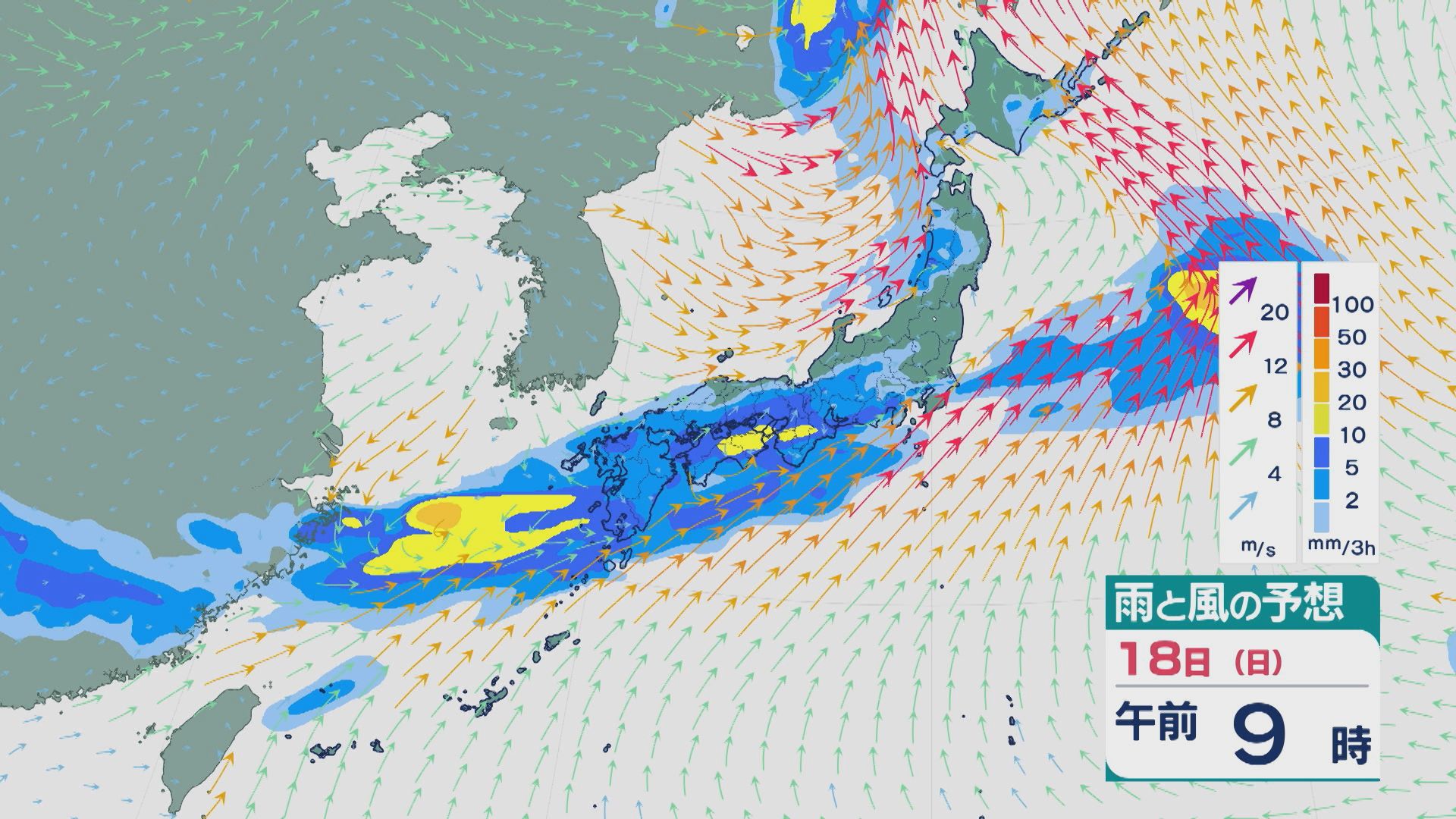 18日(日)も、西日本から東日本にかけて雨は降ったりやんだりを繰り返す状態が続きそうです。