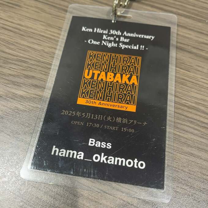ハマ・オカモトさんは「『平井堅 Ken Hirai 30th Anniversary Ken's Bar -One Night Special !!-』出演は当日演奏するまで秘密でした。」と綴ると、当日のアクレディカードの写真をアップ。