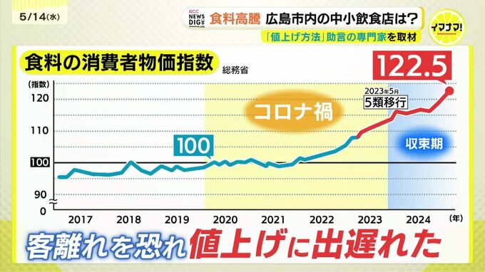 難波さんは、食料品の物価上昇の時期が、コロナ禍の収束期と重なったことで、中小飲食店の多くは客足が離れるのを恐れて「値上げに出遅れた」と分析しています。「値上げ」のヒントは、大手飲食チェーン店の戦略にあると言います。