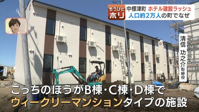 建設中のものも含めると、町内では2024年から2025年にかけて、ホテルやウィークリーマンションが4か所、合わせて145部屋分増える見通しです。