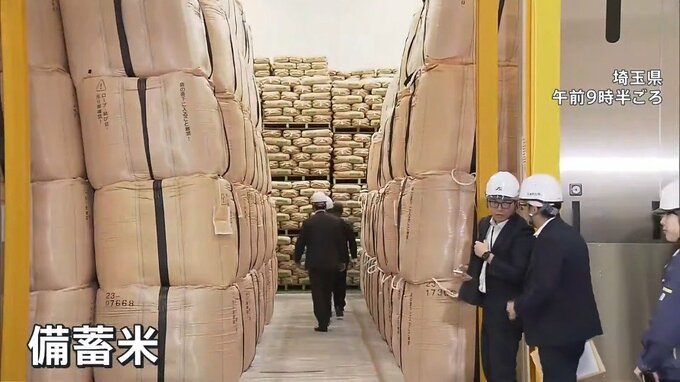 巨大な倉庫にびっしり並ぶのは政府の備蓄米。14日、自民党の小野寺政調会長が埼玉県内の倉庫を視察しました。