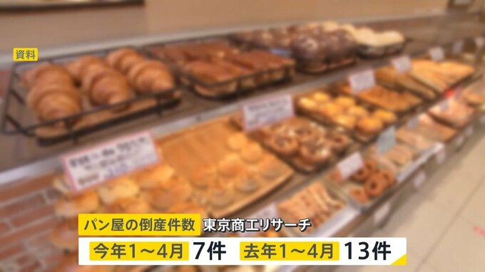 東京商工リサーチによりますと、2025年のパン屋の倒産件数は1~4月までで7件と2024年の同じ時期と比べて半減していて、「コメが高騰し、パンの需要が盛り返した可能性がある」と分析しています。