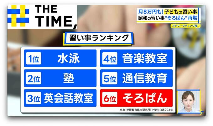 安住紳一郎アナ(51)は習字とエレクトーン。宇賀神メグアナ(29)はピアノ・そろばん・水泳・バレエ・英語を習っていたと話しますが、令和の子どもたちの習い事事情は?