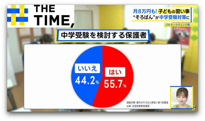 全国珠算教育連盟の調査によると、都内のそろばん教室では保護者の半数以上が「中学受験を考え」通わせているとのこと。