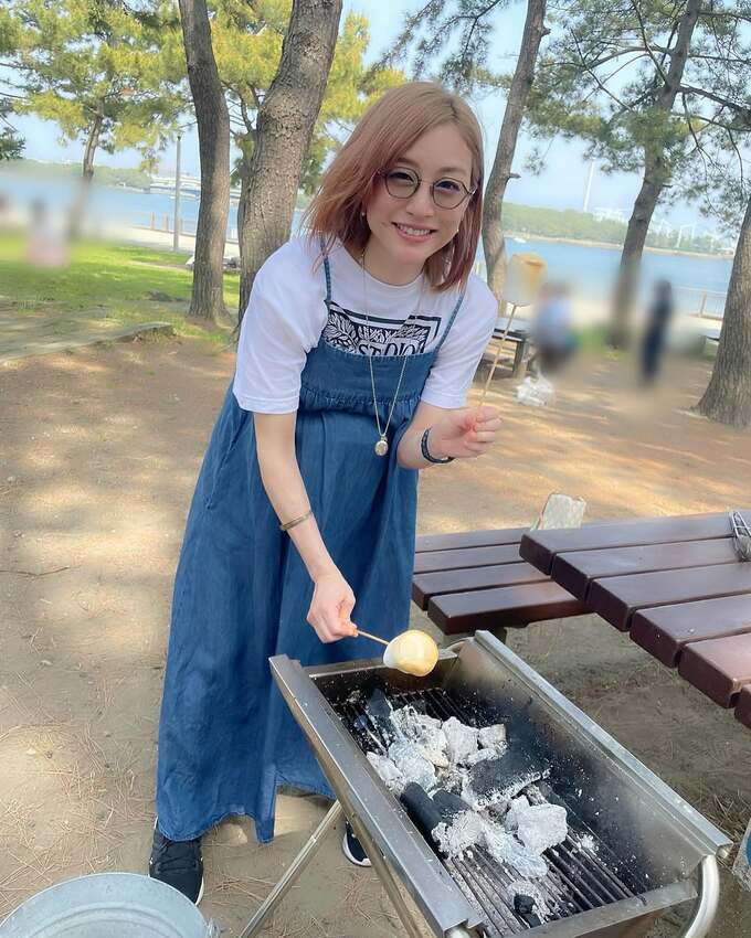 新井さんは、「外出したいな〜と、ふと出産前に行った#バーベキュー を思い出していました」と投稿。