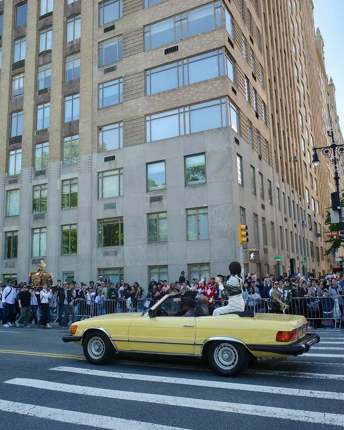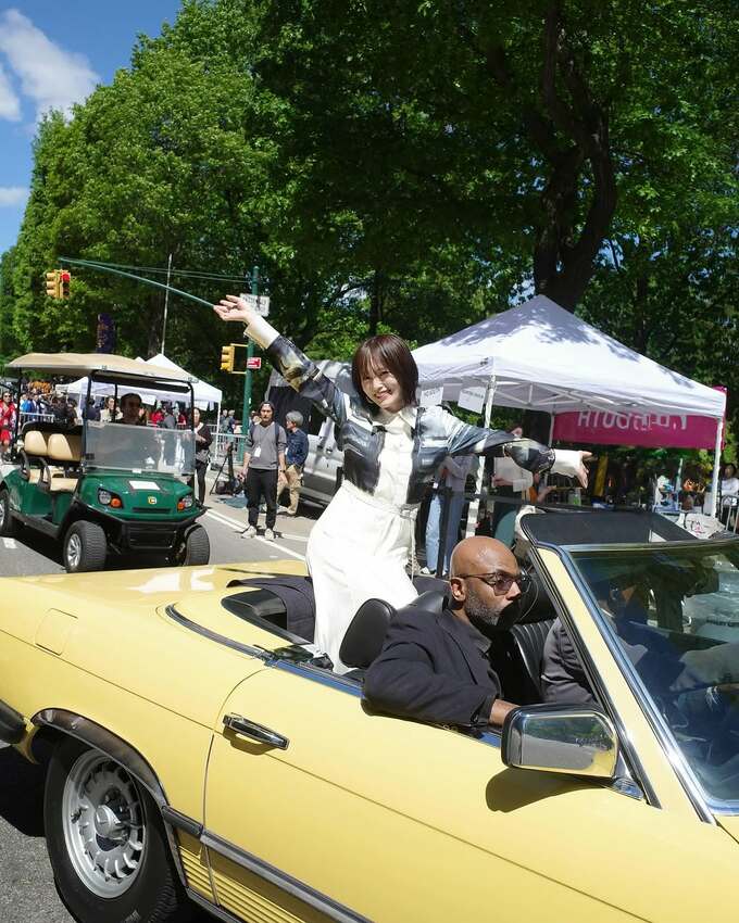 続けての投稿で、「"Japan Parade" in NY」と書き出し、「オープンカーでNYの街を巡るという非現実な体験に興奮しまくりでした」と青空の下パレードに参加したことを報告しました。