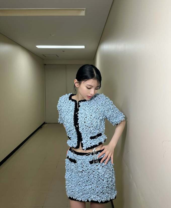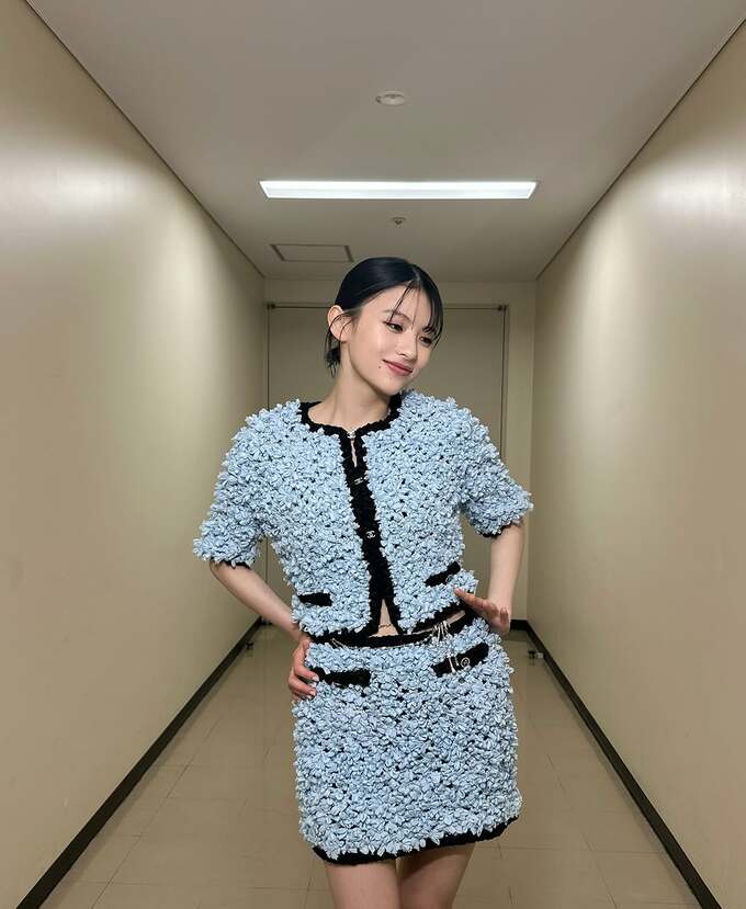 投稿された写真には、完成披露試写会の舞台挨拶で着用した薄いブルーと黒の装飾が施されたジャケットとスカートの衣装でカメラに向かって優しく微笑む姿や、自信に満ちた雰囲気を漂わせるポーズなど、様々な表情を披露しています。