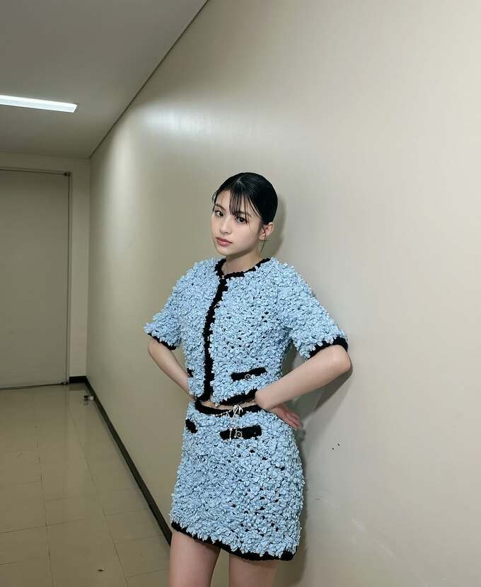 この投稿に、「ブルー衣装も超絶お似合いすぎる」「やばい可愛すぎる天使すぎる」「でぐちゃんの透明感と水色の衣装がめちゃくちゃ合ってて綺麗すぎてます」「足細くてスタイル良すぎる可愛い」などの声が寄せられています。