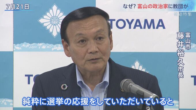 「3年前(の選挙で)応援をしていただきました。『来てくれ』じゃなくて、向こうと“あ・うんの呼吸”で。会合もしてたからね。富山の市会議員などは何人か喜んで参加しています。それは、選挙と無縁ではないと思う」