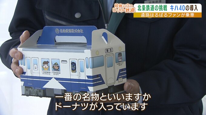 また、一番の名物というのが、“キハ40の形の箱”に入ったドーナツで、6個入りで180円です。