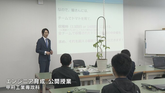 家庭菜園でミニトマトを栽培するご家庭も多いかと思います。甲府工業専攻科で、ミニトマトの生育状況のデータを取りながら甘くて収穫量が多い栽培方法を探るプロジェクトが始動しました。