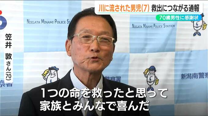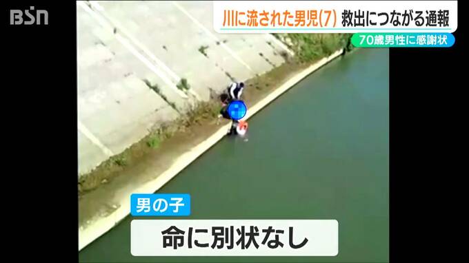 通報をうけて到着した警察官はすぐに川に入り、到着から5分で男の子を救助。