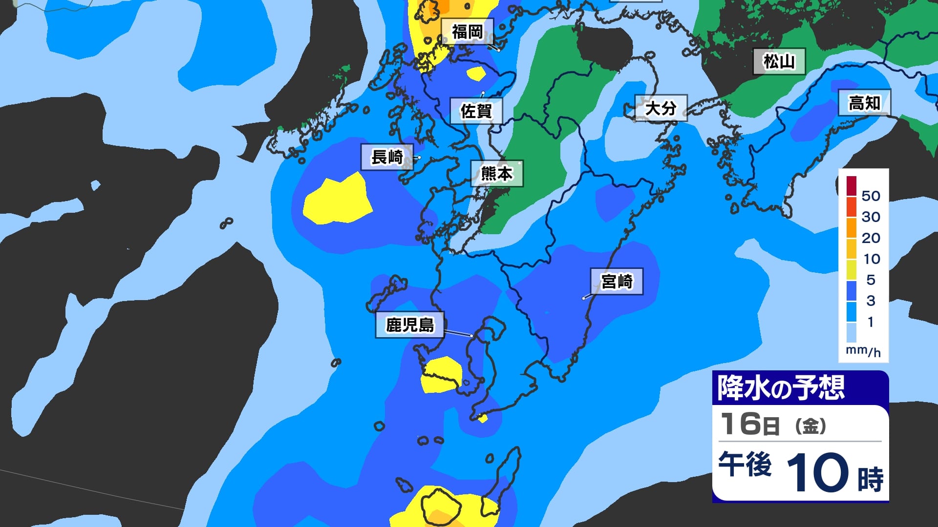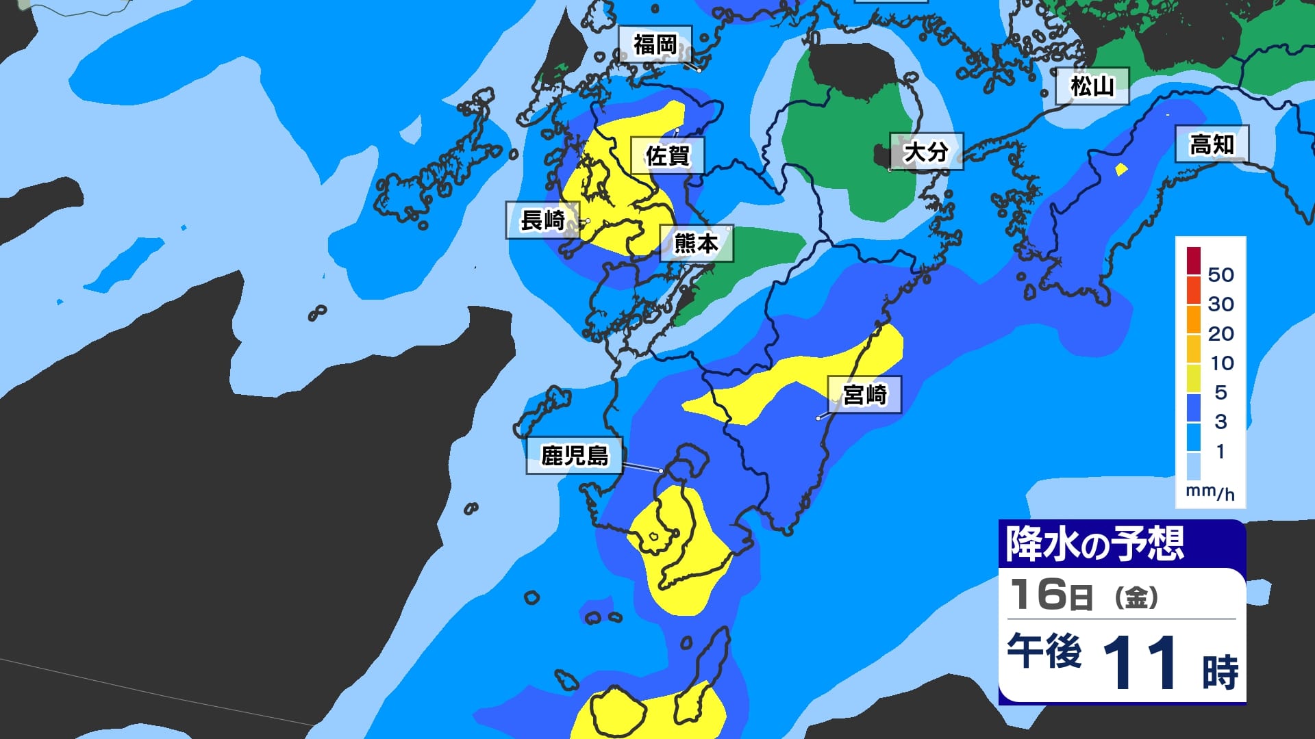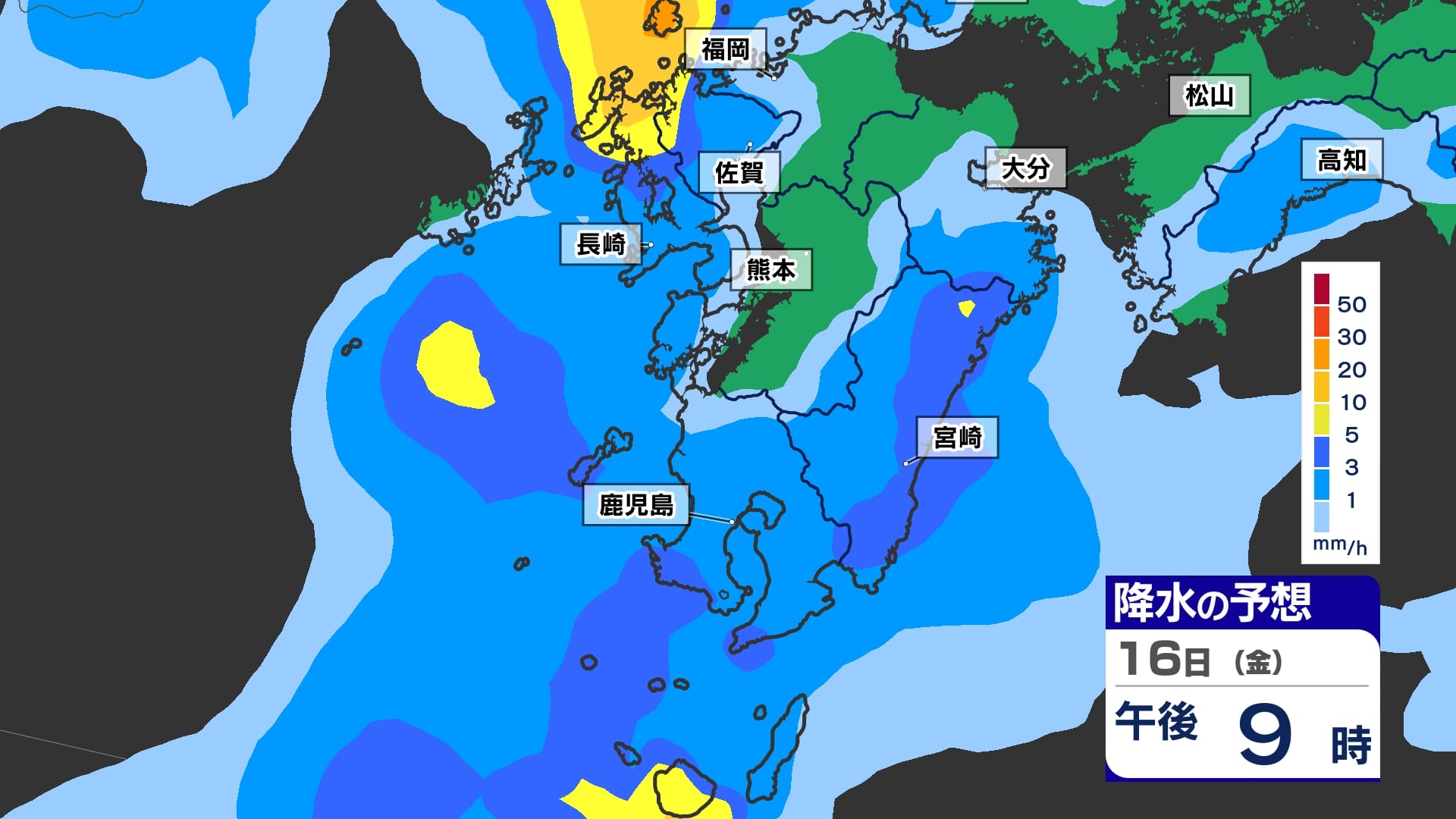 17日(土)午前は、福岡・長崎・佐賀などで活発な雨雲が予想され、午後になると活発な雨雲のエリアは、熊本・宮崎・鹿児島などに移りそうです。18日(日)午前は、鹿児島県薩摩大隅地方で大雨となりそうで、19日(月)は種子島・屋久島地方を中心にまとまった雨の予想ですが、午後になると活発な雨雲のエリアは薩摩大隅や宮崎県に移ってきそうです。雨のシミュレーションは、画像で確認できます。
