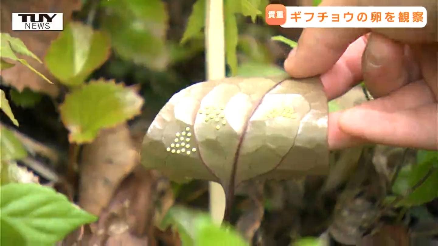 今年は、「ギフチョウ」と「ヒメギフチョウ」合わせて1350個ほどの卵が見つかっているということです。