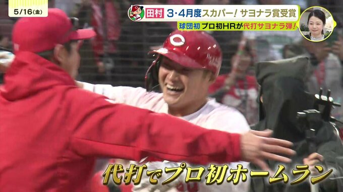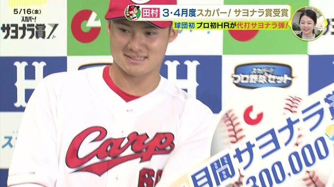 最もインパクトのあるサヨナラ打を放った選手に贈られる「スカパー!サヨナラ賞(3月・4月)」を広島東洋カープ田村俊介選手が受賞しました。