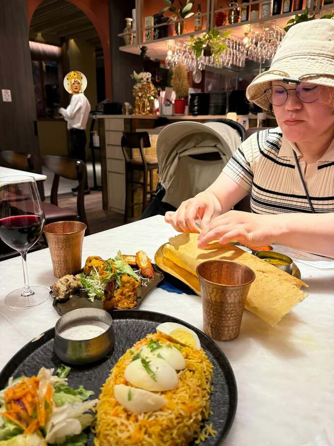 インド料理を前にした写真は「④麻布台ヒルズのカレー爆食」、そして細い脚のワイングラスを片手に視線を送る写真は「⑤結婚記念日ディナーの妖艶なワタシ」「⑥結婚記念日ディナーの妖艶なワタシvol.2」の2連発。