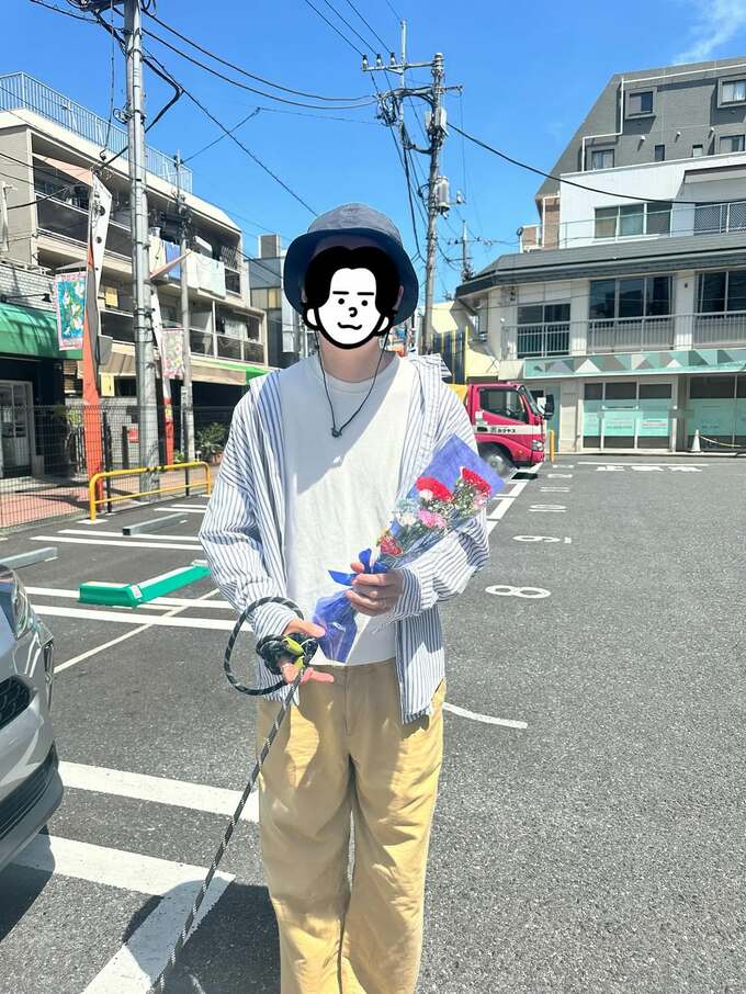 そして最後に、夫の “つーたん” さんが花束を持っている写真。そこには「キャッシュレス人間つーたんが母の日にカーネーション買ってくれると言い出した」「喜んでいましたら」「まさかの現金onlyのお花屋さんだったため自分で買う羽目になりました」と、狙ってもなかなかそうはならない、記念すべき「初の母の日」となった思い出を披露しています。